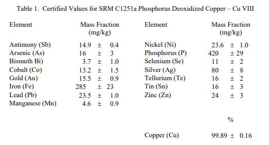 產品名稱:標準參考物質 NIST SRM C1251a - 磷還原銅-銅VIII