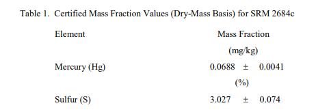 表 1 中提供了汞和硫的認(rèn)證值,以基于干質(zhì)量的質(zhì)量分?jǐn)?shù) [1] 表示。NIST 認(rèn)證值是 NIST 對其準(zhǔn)確性有最高置信度的值所有已知或可疑的偏見來源都已被調(diào)查或考慮帳戶 [2]。認(rèn)證值是根據(jù) NIST 和合作實(shí)驗(yàn)室進(jìn)行的分析結(jié)果對真實(shí)值的當(dāng)前最佳估計。