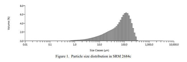 NIST SRM 2684 c煙煤(標(biāo)準(zhǔn)品)圖 1 中提供了粒度分?jǐn)?shù)的信息值。信息值被認(rèn)為是 SRM 用戶感興趣的值,但沒有足夠的信息來評估與該值相關(guān)的不確定性,或者只有進(jìn)行了有限數(shù)量的分析[1]。信息值不能用于建立計量溯源性。